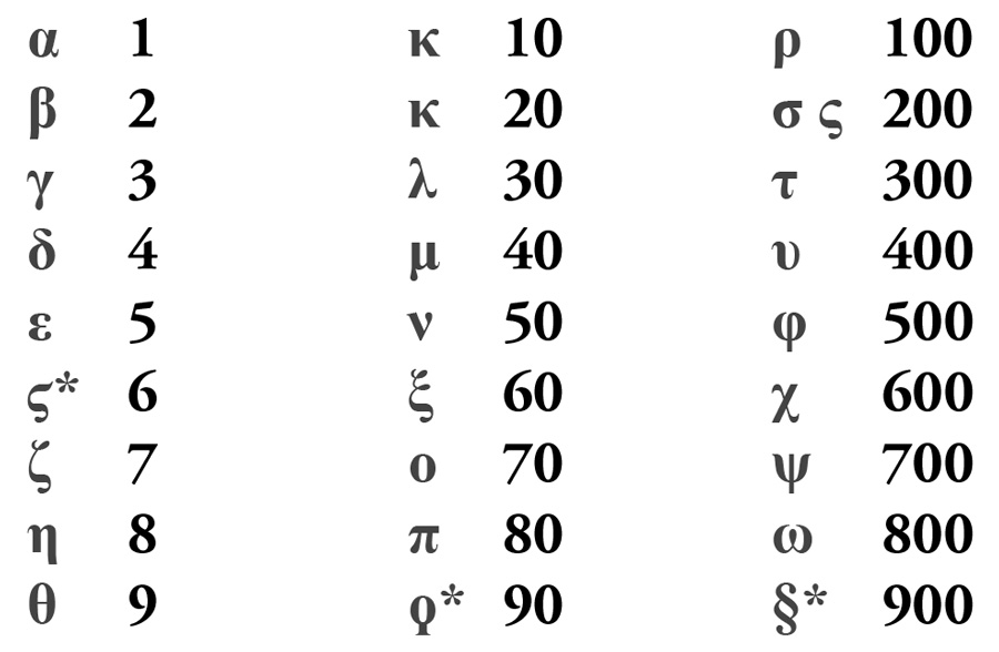 1 The Greek and Hebrew languages are distinctive in that each letter of the alphabet has a numerical value.