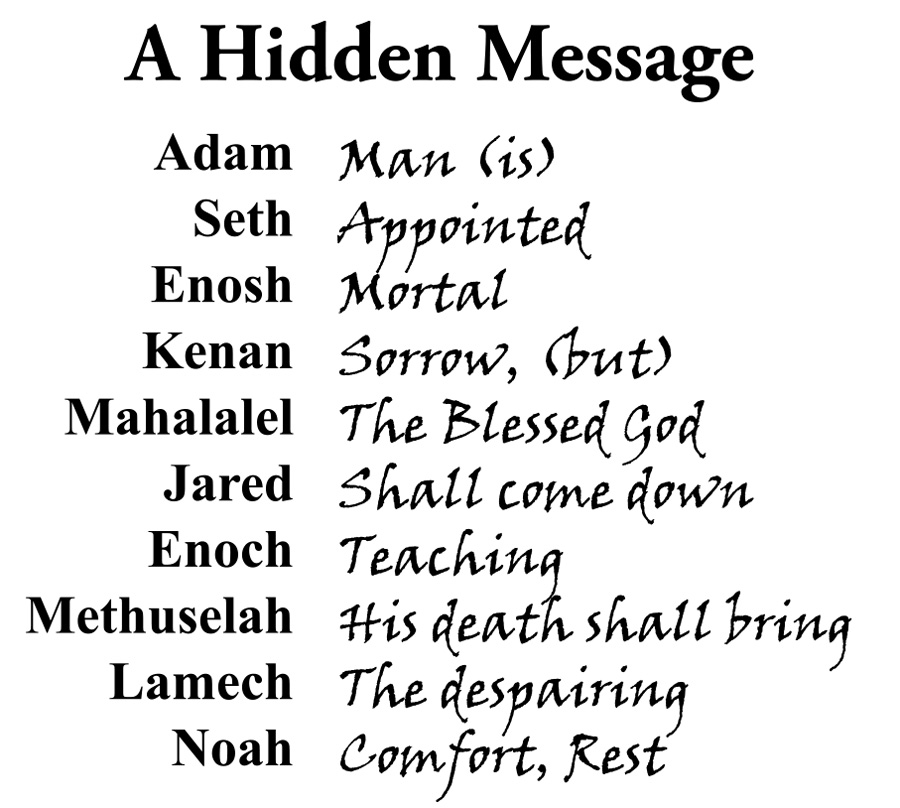 If we translate those names from their Hebrew roots they will spell out a sentence. In other words, there is a hidden message in this genealogy.